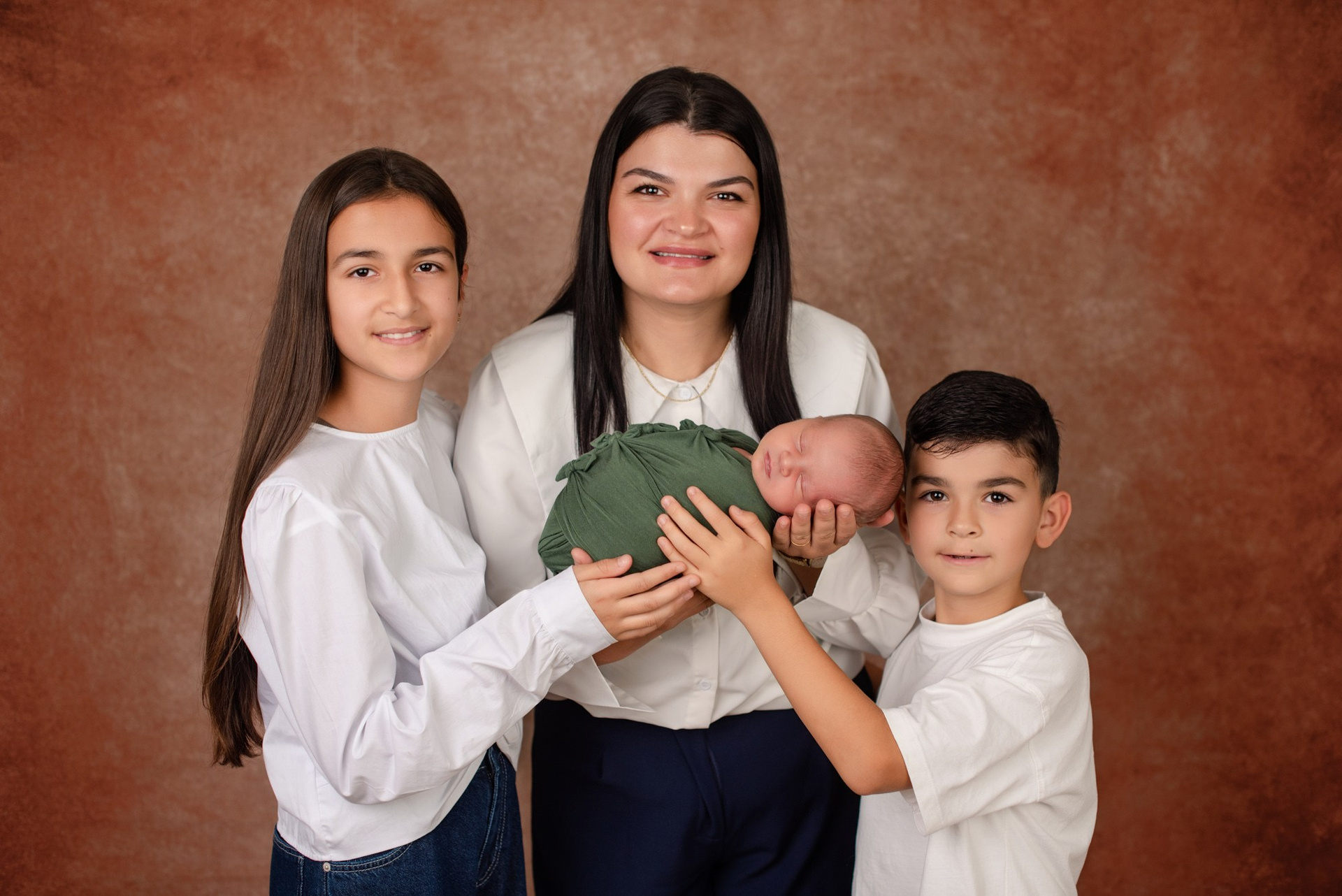 Vous aurez à votre disposition des robes pour la maman, ainsi que des accessoires et tenues pour le bébé dans une large palette de couleurs. Vous pourrez choisir les styles et les couleurs à l’avance pour une séance totalement personnalisée. Pendant le shooting, vous aurez des photos du bébé seul, avec les deux parents, avec chaque parent individuellement, et si vous le souhaitez, avec les frères et sœurs avec supplément, pour un coût additionnel.